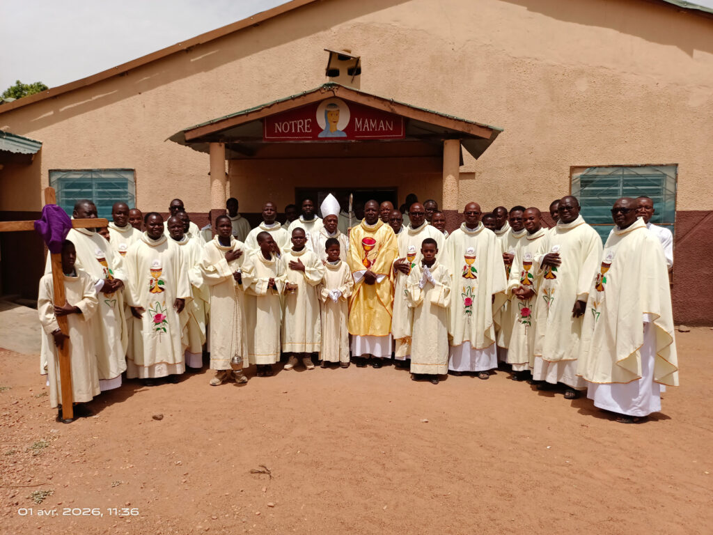 Quant au mercredi 1er avril 2026, le diocèse de Kandi a vécu la messe chrismale au rythme des mélodies des chorales Hanyé et Ogo Fun Oluwa. Étaient présents tous les prêtres du diocèse, les religieux et religieuses, les catéchistes ainsi que le peuple de Dieu. Dans son homélie, notre père évêque a exhorté tous les baptisés à mener une vie chrétienne authentique, enracinée dans l’Évangile. Nous avons été invités par le prédicateur à être comme le levain dans la pâte. Après l’homélie, tous les prêtres présents ont renouvelé les engagements sacerdotaux pris le jour de leur ordination. Ensuite, nous avons vécu la bénédiction de l’huile des catéchumènes, des malades, ainsi que la consécration du saint chrême. La célébration était sobre, simple, mais solennelle par ses rites.